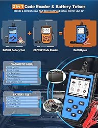 2-IN-1 OBD2 SCANNER & BATTERY TESTER – SAVE THOUSANDS ON VEHICLE REPAIRS – Stop guessing what’s wrong with your car or overpaying at repair shops. The AUTOPHIX BAS300 Plus obd2 scanner and battery tester combines full OBD2 diagnostics and professional 12V battery testing in one compact, powerful device. It quickly and accurately identifies engine, starting, and charging system issues before they turn into costly repairs — helping you save time, money, and the frustration of unexpected breakdowns. COMPREHENSIVE BATTERY HEALTH ANALYSIS – The Autophix car battery tester supports 12V battery testing and provides a full assessment of your vehicle’s battery, starting, and charging systems. It quickly detects whether your battery is performing at its best and determines if your electrical system has enough power to start the engine. By identifying potential issues early, this tester helps you avoid roadside breakdowns, prevent premature battery failure, and save on unnecessary maintenance costs. FULL OBD2 DIAGNOSTIC FUNCTIONS – The car code reader provides complete OBD2 system diagnostics to help you quickly identify and fix engine problems. It can read and clear trouble codes (DTCs), turn off the Check Engine Light (CEL), and display live data streams and freeze frame information for precise troubleshooting. You can also perform I/M readiness checks, O2 sensor tests, EVAP system tests, and on-board monitor analyses, as well as retrieve detailed vehicle information (VIN, CID, CVN) — all in one powerful tool. WIDE VEHICLE & BATTERY COVERAGE – The obd scanner offers broad diagnostic coverage for most vehicles sold in the U.S. since 1996, as well as 2002 and newer European models and 2008 and newer Asian vehicles when used as an OBDII code reader. As a battery tester, it supports all 12V batteries (100–2000 CCA), including flooded, AGM, GEL, and EFB types. Perfect for cars, SUVs, pickup trucks, motorcycles, ATVs, boats, and golf carts, making it a truly versatile tool for both personal and professional use. SAFETY & RELIABILITY YOU CAN TRUST – This scanner and tester is built with multiple layers of protection to ensure safe and stable operation. It features reverse polarity protection to prevent damage from incorrect connections, as well as short circuit, overcurrent, and overvoltage protection for maximum electrical safety. The durable ABS housing provides excellent impact and corrosion resistance, helping the device withstand daily use and deliver long-lasting performance.