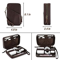 💼【Rugged Top Grain Leather】➯ Our Accessories Organizer Bags are crafted from oil-tanned top grain leather, known as Chamois Leather. Featuring a rough matte texture, this 'Pull Up Leather' naturally develops a rich, unique patina over time, embracing its 'crazy horse' character. 🔌【Sleek Vintage Design】➯ Handcrafted with a minimalist vintage aesthetic, this product offers a pleasing tactile experience. Measuring 8.1" x 4.9" x 2.4", it's the perfect slim fit for data cables, USB, chargers, headphones and other accessories. Exterior pocket for easy access to cards and passport. Combining protection with sleek portability. 👍【Genuine Quality, Lasting Durability】➯ Our top grain leather showcases natural characteristics, setting it apart from artificial materials like split grain or PU. With simple maintenance, experience a product that's durable and ages gracefully without cracking or peeling. 💁【Durable and Improving with Age】➯ Utilize more, worry less! The character of our Top Grain Leather enhances with use; scratches fade, enriching its texture and appearance while boosting its stain and moisture resistance. Enjoy our 1-year warranty for added confidence! 👨👩👧👦【Universally Stylish for Everyone】➯ This craft's timeless design and durable construction make it a perfect fit for men and women, young and old. An excellent choice for personal use or as a thoughtful gift, it’s a blend of vintage charm and modern functionality!