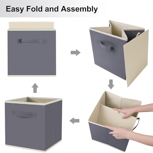 FabTotes Storage Bins 6 Pack Collapsible Storage Cubes, 11"x10.5"x10.5" Large Book Organizer Boxes with Handles and Cardboard, Baskets for Organizing Closet Shelves (Grey)