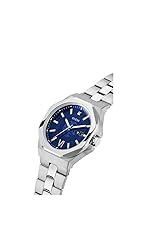 42mm Silver Tone Stainless Steel Case See Through Blue Dial Date Window Silver Tone Brushed/Polished Stainless Steel Bracelet Quartz Analog 3 hands w/date Water resisistant to 50 meters