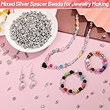 500 Pcs Bracelet Spacer Beads, Silver Bulk Random Styles Loose Spacer Metal Charm for Necklace, Earring Making DIY Jewelry Accessories