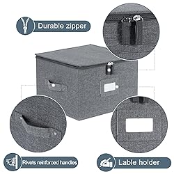 - SPECIFICATIONS: - Color: gray - External material: Polyester linen - Upholstery Material: Non-woven fabric - Construction Material: Environmentally cardboard - Product Size: 4 pack 12"X12"X8"(31cmX31cmX20cm) ADVANTAGES: -Labels : there is a label window on the front side, you can easily tell what is inside through. -Collapsible : Can be folded flat to save space when not use. -Dustproof : With lid prevents dust from touching utensils, easy to carry and store. -Sturdy top cover : Make China storage stackable. -Reinforce handles : Allows you to carry up to 30 lbs. - 12 Large felt dividers : keep serving platters from bumping into each other. If for any reason you're not completely happy with your purchase, please contact us and we will resolve issues and ensure your contentment.