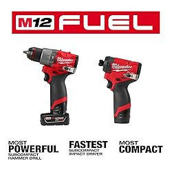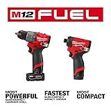 Milwaukee M12 FUEL 12-Volt Lithium-Ión Sin Escobillas Combo de Taladro Percutor Inalámbrico y Conductor Impacto Cordless con 2 Baterías y Bolsa (2-Herramienta)