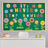 Funrous 90 Pcs Never Stop Growing Bulletin Board Decorations Summer Spring Classroom Theme Decor Positive Bulletin Board Set Flower Cutouts Inspirational for Teacher School Office Chalkboard Supplies