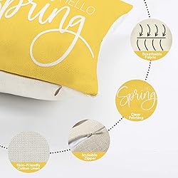 Cotton Linen Holiday Decorations: The pillowcase with bright yellow color is not only for home decorations, but also suitable for holiday gifts or party supplies. Our pillow cover is also a great addition for spring. At the same time, it is also the first choice for birthday gifts Product Size: The size of the pillowcase is 12"x 20". Only pillowcase. The rectangular shape and standard size match most pillow cores on the market. Our pillowcase has hidden zipper, which does not affect the appearance and is easy to disassemble and clean Premium Material: The pillow cover is made of 100% linen, which is very durable. It can be machine washed or hand washed. Comfortable hand feel, no odor, environmentally friendly and breathable. Cotton linen fabrics give pillowcases a rustic and farmhouse style Home Decorations: Our pillow cover can add texture to any space. You are free to use it in the living rooms, bedrooms, offices, coffee shops, bars, restaurants and other indoor places. It is also suitable for outdoor occasions, such as porches, beaches, courtyards, gardens, lawns, cars, etc. Our pillowcase is your best choice for decoration in spring, summer, fall, autumn and winter Wonderful Gift: The pillowcase is lovely warm gift for men and women of all ages. Not only for special holidays or seasons, this pillowcase can also be used as Spring gifts. Or just an ordinary working day, you want to buy as gifts to your best friend or family who has been with you for many years, or your important person, it is very suitable choice