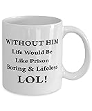 Correctional Officer Mug, Without Him, Life Would Be Like Prison. Boring & Lifeless, LOL!, Novelty Unique Gift Ideas for Correctional Officer, Coffee Mug Tea Cup White