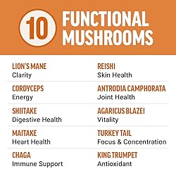CONTAINS 10 FUNCTIONAL MUSHROOMS: Every serving provides a powerful, all-in-one blend of functional mushrooms, including cordyceps, reishi, chaga, lion’s mane, shiitake, turkey tail, maitake, agaricus blazei, king trumpet, and antrodia camphorata. #1 MUSHROOMS BRAND IN AMERICA*: Thanks to their delicious flavor and amazing health benefits, Modern Mushrooms is now the #1 Mushroom Brand in the USA! *IRI MULO L26 W/E 2/24/24 “Mushroom”. MADE WITH FRUITING BODY EXTRACTS: Unlike low-quality mushroom supplements, Modern Mushrooms contains powdered extracts of the fruiting mushroom bodies, which contain the highest levels of good-for-you nutrients. ALL-IN-ONE CONVENIENCE: No time to make mushroom coffee? No problem. Modern Mushrooms delivers the natural power of the most popular mushroom species in a convenient, once-per-day formula. GLUTEN FREE, DAIRY FREE, & VEGAN: No matter your dietary lifestyle, you can make Modern Mushrooms part of your daily ritual. Best of all, it’s stimulant free, and contains no preservatives, artificial sweeteners, or artificial dyes.