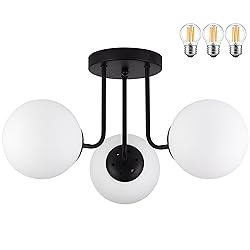 KoKo&Yukina 3-Light Semi Flush Mount Ceiling Light Globe Lights Mid Century Ceiling Light with Opal Milk Glass Globe & Matte Black for Bedroom Hallway Entryway Kitchen Living Room (Bulb Incl.)