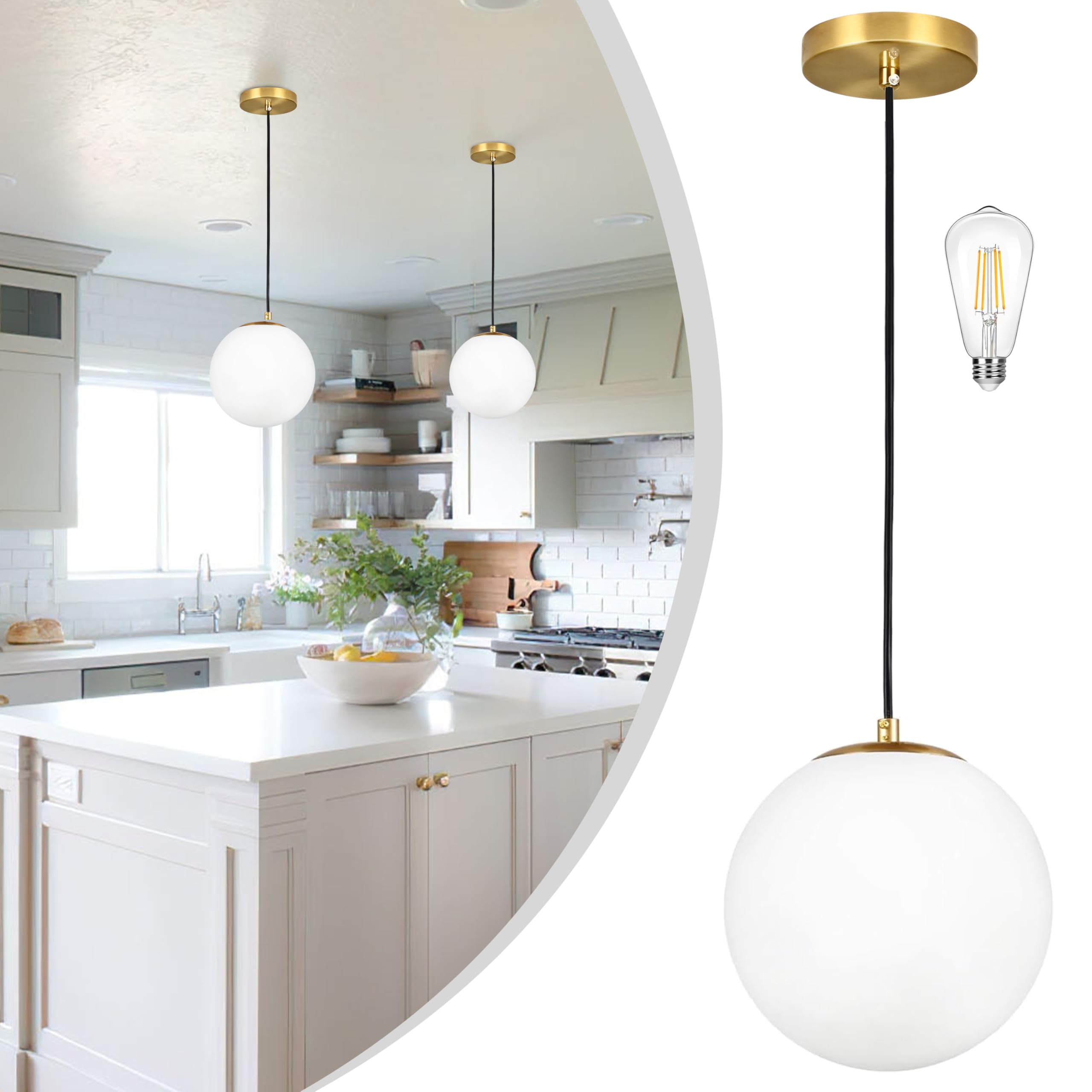 [Size & Package] D20.5" x H10.3" , the size of canopy is D6" (15CM). Bulbs Included: 3 LED bulb send for free, 7W 2700k warm white light color, voltage 110-220V.Enough to illuminate your large space. [Bulb] Bulb base: E26.This mid-century matte black ceiling light works with incandescent, LED, CFL, halogen and color changing bulb. Dimmer Compatible, fully dimmable when used with a dimmable bulb and compatible dimmer switch (not included) [Classic Design] Mid-century modern globe ceiling light is made of 3-light black chandelier with black finish and milk white glass shade that perfectly balances beauty and functionality. It will create a perfect vibe while illuminating your room. Globe ceiling light is perfect as bedroom ceiling light. The stylish combination is suitable for a variety of home styles such as mid-century,modern, contemporary, farmhouse, etc. It is also a great ceiling decoration for gifts to friends and family. [Quick & Easy Installation] This flush mount ceiling light is hardwired, installation required. Can be easily assembled, The golden semi flush mount ceiling light ,completed installation guide and mounting hardware are all provided in the package. (Warm tips: please turn off the power and read the manual carefully before installing it into the ceiling). Save your time. [After-sales service]: If you buy products in our store after encountering problems that can not be solved, please tell us, we will provide you with solutions as soon as possible!