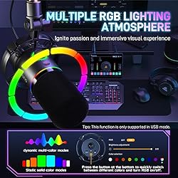 - Immerse yourself in the world of cutting-edge audio creation with MAONO PD200X dynamic gaming microphone, a powerhouse that boasts an array of innovative features to take your content creation to the next level. The streaming microphone not only offers dual-mode connectivity, seamlessly switching between USB and XLR interfaces to cater to a wide range of recording needs, but also ensures compatibility with diverse operating systems and professional equipment for versatility and integration. Crafted from premium metal materials with meticulous craftsmanship, PD200X streaming microphone combines a durable internal structure with a visually captivating exterior design, emanating sophistication and durability in equal measure. Includes essential accessories such as a shock mount, USB-C to USB-A/C cable, adapter, and user manual, simplifying setup and guaranteeing peak performance. With an 18-month warranty, you can create with confidence, knowing your investment is protected. Elevate your audio recordings with customizable microphone sound effects, allowing you to tailor your audio to suit your unique style and preferences. Engage your audience further with dynamic lighting effects that synchronize with your voice or streaming environment, creating a captivating and immersive experience for your viewers. Transform your audio production capabilities with cutting-edge software that enhances your recording experience, offering advanced audio processing features, real-time monitoring, and the flexibility to fine-tune settings for the perfect sound. Dive into a world of creativity and professionalism with PD200X XLR/USB dynamic podcast microphone, a harmonious blend of functionality, style, and reliability. Unleash your creativity, captivate your audience, and elevate your content creation with this top-tier microphone that offers a comprehensive package of features and unrivaled performance.