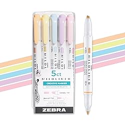 - Zebra Pen Mildliner Dual-Tip Highlighter pens help you express your unique creativity with the convenience of two sized tips in each pen. The unique mild color of each pen provides soft hue on the page, allowing you to layer with the water-resistant ink with ease. Beautiful colors don't bleed through, so you needn't worry about the next page in your sketchbook. This 5-count set includes gentle tones: soda blue, lilac, baby pink, honey orange, and sherbert. AP certified non-toxic. Keep a set of Mildliner Double Ended Highlighters in your desk drawer, art bin or backpack for creativity at your fingertips. Create personalized greeting cards, sketch out a new idea or add dashes of precision color to any project. Add some beauty to your bullet journal or planner. Bring a touch of color to handmade cards, letters and art presentations. Gift your favorite budding artist with a complete set. Excellent for marking up important passages in texts.