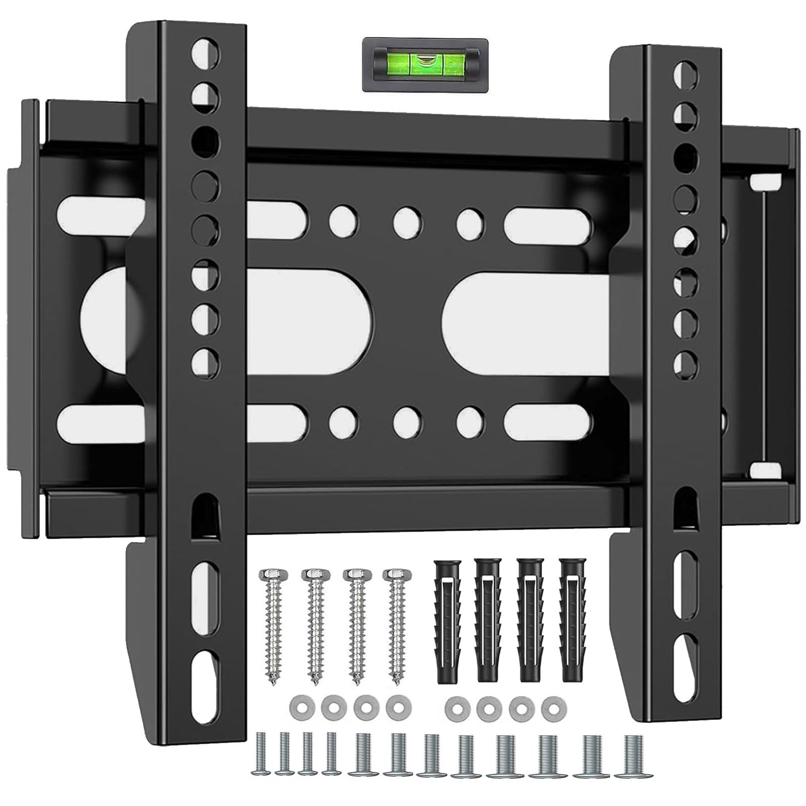 【VESA Mount Compatibility】Our Fixed TV Wall Mount fits most 14”-42” TVs up to 55lbs with VESA mounting patterns 75x75 to 200x200mm. Especially popular for 17, 19, 21, 24, 27, 32, 34, 35, 38, 39, 40, 42 inch tvs and computer monitors sizes. 【Suitable Various Brands】 Universal tv/monitor mount, it’s compatible with different famous brands. Please verify the size, weight, and VESA pattern of your TV before purchasing. 【Saving Space】Our low profile TV wall bracket retracts to just 0.6”(20mm) from the wall to save space in your living room and home while giving you a ultra slim, clean and confortable appearance. 【Strong&Sturdy Design】 We are confident in the strength and durability of our universal TV bracket. They are made of premium steel material. The security locking screws of our television mount, fixed on the wall plate, avoiding sliding or falling. Whether you are mounting in the living room, bedroom, or children’s room, you can enjoy peace of mind knowing that your TV is secure. 【Widely Applications】Our small mounting bracket suitable for indoor or outdoor applications likes living at home, bathroom, kitchen, fireplace, office, meeting room, train waiting hall, plane waiting hall, department store, school, classroom, exhibition, hall, mall, hotel, show room, dormitory, modern entertainment center, KTV, Gym, RV and so on. 【Quickly&Easy Assemble 】Step-by-step instruction manual and mounting hardware are included for easy installation, please contact our friendly product support team if you have any questions, including nuts, screws or other parts missing.