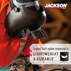 - Made especially for pipeline applications, the Jackson Safety® PL280 welding helmet comes with a spring-loaded lift front for maximum versatility, and the Super Tuff nylon material is built for the harshest welding extremes. Spring-loaded lift front provides added flexibility by eliminating the need to raise the hood during pre/post preparation work. Patented 370 Speed Dial® ratcheting headgear achieves a perfect fit and creates the ultimate balance in comfort and functionality (Models 14301 and 14311). Patented lens retention system provides effortless loading of filter, cover, and protective plates. Comes complete with a Z87.1+ high impact polycarbonate window and a 2” x 4.25” Shade 10 filter.