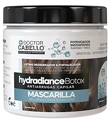- Transform your hair care routine with the Doctor Cabello Hydradiance Kit 4-in-1, a professional-grade system designed for intense hydration, frizz control, and visible repair. This advanced treatment bundle includes: Hydradiance Illuminating Shampoo (16 oz) – Gently cleanses while infusing hair with moisture and strength. Hydradiance Shot (2.4 oz) – A concentrated treatment rich in hyaluronic acid, collagen, keratin, and vitamins to restore shine and softness instantly. Hydradiance Mask (16 oz) – A deep repair mask that smooths, strengthens, and fills in damaged strands while controlling volume. Hydradiance Leave-Liss (8 oz) – A leave-in straightening cream that tames frizz, boosts shine, and protects during styling. Formulated with a powerful blend of hyaluronic acid, collagen, keratin, amino acids, and vitamins, each step works synergistically to repair dry, dull, or over-processed hair, delivering a naturally sleek, frizz-free, and radiant finish. This kit is free from salt, sulfates, and parabens, making it ideal for all hair types, especially those that are chemically treated, colored, or sensitive. How to Use: Step 1 – Shampoo: Apply to wet hair, lather, and rinse thoroughly. Step 2 – Repair Shot: Apply to towel-dried hair in sections, blow-dry, and flat iron for deep absorption. Step 3 – Mask: After step 2, rinse and apply the mask. Leave for 5–10 minutes and rinse. Step 4 – Leave-Liss Cream: Apply to damp hair. Do not rinse. Style as usual. Get salon-level softness and shine at home with the Doctor Cabello Hydradiance System — your 4-step ritual for visibly healthier, smoother hair.