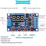 - Product description This is a timer delay trigger module with LED display. The module has 5-36V wide voltage. At room temperature, its operating current is up to 15A, power up to 400W, so it can be used for most equipment. Besides, you can set different OP, CL, LOP parameters, and these parameters were independent of each other and saved respectively. Even when there is a power failure, all set parameters can be automatically saved. Specifications: Voltage: DC 5V~36V. Trigger Signal Source: High voltage level trigger (3.0V~24V), signal ground and system ground are not on common ground to improve the system's anti-jamming capability (you can also connect them on common ground). Output Capacity: DC 5V~36V, at room temperature, continuous current is 15A, power 400W. With enhanced heat dissipation, the current can be up to 30A. Quiescent Current: 20mA Operating Current: 50mA Working Temperature: -40℃~85℃ Timing range:0.1 seconds (min) to 999 minutes (max) continuously adjustable Size: 60×34×12mm / 2.36×1.33×0.47in Note: 1. The module is an active output, the output voltage equal to the input voltage. 2.'DC + 'and' load + ' are internally shorted(connected), but' DC- 'and' load - ' cannot be shorted, otherwise the load cannot be controlled on and off, which is equivalent to load being powered on always. Package Includes: 2 x Timer Switch Module 1 x Screwdriver 1 x Red and black cable