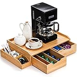 SOUJOY Bamboo Drawer Organizer for Coffee Pod, K Cup Organizer for Counter, Tea Bag Storage Organizer with Drawer and Side Storage Box for Kitchen Office Coffee Bar