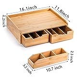 - SOUJOY Bamboo Drawer Organizer for Coffee Pod, K Cup Organizer for Counter, Tea Bag Storage Organizer with Drawer and Side Storage Box for Kitchen Office Coffee Bar If you have a coffee maker you will love the K- cup storage. This bamboo coffee pod storage is designed to organize your coffee pods by brand, taste or some other, easy to get what you want. It saves a lot of space on your kitchen counter and stores bunch of K-cups and tea bags. Specifications: Color: Bamboo Size: 16.1'' x 11.8'' x 4.2'' Material: Bamboo Package: 1x Bamboo Coffee Pod Storage Drawer