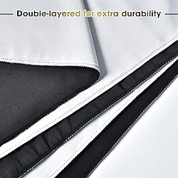 【2-in-1 black white background 】The size of the photo backdrop is 3ft x 5ft, it is double-sided with 2 different colours, say goodbye to the problems of a single black or a single white, which gives you the flexibility to work with objects in all colours without worrying about the clothing colour. 【Double-layer fabric with high density】The screen photo background is made of double-layer high-density nylon fabric, with excellent edge stitches, washable and ironable, durable; wrinkle-free and non-reflective surface, perfect backdrop for photography or videography.The background sheet needs to be folded that will may produce creases, pls iron the surface with a steam iron but not dry iron. 【Efficient and easy installation】 Black and white backdrop is equipped with 4 sturdy 4.5 inch clips, it has a maximum opening of 2 inches and has a very good clamping force. Or you can quickly set up by threading through the cross bar hole. The cloth can be easily threaded and removed thanks to the generous seamed cross bar hole and thanks to its poly fabric. 【Thick and firm】The photography background fabric can be folded, washed or ironed. With double layers of fabric, the black and white backdrop size is perfect for headshots, simple portraits, archival photos and product photography. 【Ideal for Content Creators】With our black and white photography backdrop, you can take fashion and video recordings when space in the studio is limited and pack them together as a travel kit. This photography background is suitable for players up to live stream, YouTube produces, vlog producers, filmmakers, actors, companies, schools, online bloggers and interviews, photo studios and more.