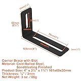 Solid L-shaped Bracket - Made of high-quality cold rolled steel, with a sandblasting finish surface in black powder coated, rounded corners to avoid scratching your hands which is a ⅛"(3mm) thickened material, it's not easy to deform, rugged, and durable, to improve weather resistance, that has a long service life. 90 Degree Bracket Dimension - L x H x W: 4"" x 2⅜"" x 1⅛""(101 x 60 x 30mm), Thickness: ⅛""(3mm). Mounting Slot Size: 1⅜"" x ¼""(35 x 65mm), 3"" x ¼""(78 x 35mm). Adjustable Slotted Corner Bracet - Can be adjusted to a certain extent to solve installation problems and shift as needed. 8 pcs L-shape corner braces,bolt or screw are not Included. Each Corner Brace Max.load 33lb(15kg). Wide Range of Applications - Ideal to use in different components mounted or fix, like mounting a reservoir in various locations in a PC case or reinforcing right angle corner joints, such as a bookcase, chair corner, table leg, bed, and cupboard. Get More Done - Thanks to the pre-drilled slot and whole-shaped technology, save you time and effort. Suitable for homes, shops, or commercial places, and very suitable for DIY jobs. One person can finish the installation and enjoy the happiness brought by those fix-it jobs. Due to differences between monitor displays, the actual color may vary slightly from the image. Because of the different measurement methods, please allow a 0-1/5 inch difference due to manual measurement.