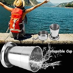 [Collapsible Design]: The expandable water glass convenient size easily slips into your pocket, purse, or backpack, save space, collapsible coffee mug is convenient for travels taking practical [Stainless Steel Collapsible Mug Versatile Use]: Pocket size collapsible cups perfect for outdoor camping, traveling or backpack adventure. The portable telescopic cup can be carried around in a sanitary condition [Demountable Collapsible Cup Best Gift]: The folding camping cup for your friend who love a tourism and camping so folding stainless steel cup is can be a perfect gift for them [Travel Collapsible Mug Fine Design]: Portable outdoor cup for traveling are made of high-quality stainless steel material, so collapsible travel cups strong and durable, safe and reliable, folding mug with keychain not easy to damage, stainless steel collapsible cups drinking [Stainless Steel Camping Mug Fun And Convenient]: Looking for a fun and convenient way to enjoy your favorite beverages on-the-go? Look no further than the foldable cup! This collapsible camping mugs has got you covered for everything from your morning coffee to an afternoon smoothie to an evening glass of milk, collapsible cup with lid