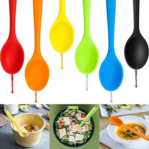 - PACKAGE INCLUDE: You will receive 12 pieces of silicone serving spoons in 6 colors, each color has 2 pieces of silicone cooking spoons, and the colors are black, red, orange, green, yellow, blue, enough quantity and color choices to meet your daily use, replacement and sharing.