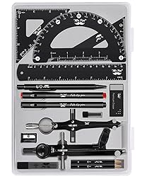 - This package includes 2 compasses, 2 triangles, 1 6-inch ruler, 1 protractor, 2 pencils for the compass, 2 fineliners, 1 metal mechanical pencil, 1 pencil sharpener, 1 eraser, and 2 pencil lead refills. It provides all the essential tools for geometry, math, and design work.The tools come in a durable plastic case, which keeps them organized and protects them from damage. The case is compact and easy to carry in a backpack or store on a desk, ensuring convenience and portability.Each tool in the set is designed for ease of use and durability. Whether measuring angles, drawing accurate lines, or sharpening pencils, these tools are crafted to provide a seamless and enjoyable experience for all users.Mr. Pen geometry set is suitable for a wide range of users, including students, teachers, math experts, architects, engineers, artists, and designers at any level. It caters to various needs, from precise measurements to artistic creations.With its practicality and versatility, this geometry set makes a perfect gift for kids, friends, or anyone interested in mathematics and design. Its compact size allows easy transportation to class or storage in the classroom or at home.