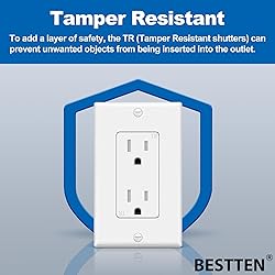 - BESTTEN 50 Pack 15 Amp Decorator Receptacle Outlet, Tamper Resistant Receptacle, Residential and Commercial Use, Wallplate Included, 15A/125V/1875W, UL Listed, White