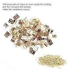- Material: Antique brass door hinges made of premium brass, the retro butt hinges are very sturdy and durable, not easy to deform in long use. The small brass hinges max opening angle is 270 degrees. Exquisite Workmanship: Small but exquisite, the folding butt hinges have retro design and metal lustre that will add more elegance to your work. These nice decorative hinges can be used to enhance the beauty of miniature products. Package: 100 piece solid brass door hinges set will meet all your needs for crafting, and the included 400 screws make the installation easier. Brass hinges for cabinet doors easy to install with a screw driver. Widely Use: 8 x 10mm / 0.3 x 0.4in decorative hinges are suitable for making retro hand made crafts, small woodworking projects, wooden jewellery boxes, cabinet. These mini hinges can be used on model making, dolls houses, jewelry box and other general use around your home or shop. Size: The compact size and light weight cabinet drawer butt hinges bring more convenience to carrying and storage in daily working. These folding butt hinges with screws are widely applied in daily life, suitable for installing a wide range of furniture at home.Specification: Item Type: Mini Hinge Product Material: Brass Specification: 100 Pieces Product Size: Approx. 8 x 10mm / 0.3 x 0.4in Application: Box modification, DIY jewelry box. Package List: 100 x Mini Hinge 400 x Screw