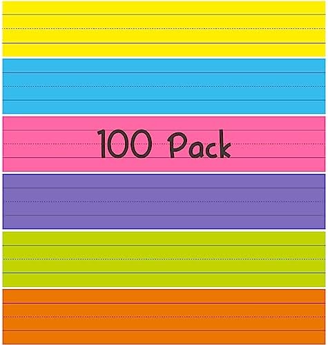 100 Pack Sentence Strips, Ruled Sentence Strip Lined Paper for Handwriting Practice Learning Tool Classroom School, Office Supplies (6 Assorted Colors, 17” x 3”)
