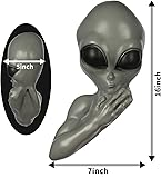- This alien tree peeker is the perfect garden decoration to create a humorous surprise. Shock your guests by hanging on a tree in your yard to give the appearance of an alien peeking out from behind. Perfect for Halloween displays, pranks, and year round use. Made of durable plastic. Measures approximately 14" tall and 6" wide.