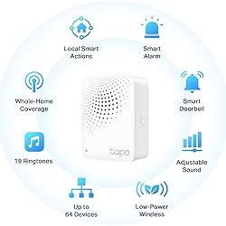 【Reliable Long-Range Connections】The Tapo Hub operates on a lower frequency broadband, resulting in fewer signal interferences and ensuring stable connectivity for all your devices throughout your home. With a maximum connection distance of up to 30m, the Tapo Hub outperforms wireless network systems in the 2.4 GHz band. *Our internal laboratory tests confirm the coverage and range of the Tapo Hub, but keep in mind that actual results may vary depending on environmental conditions. 【Go Beyond Just Doors and Windows】The device provides real-time monitoring of windows, doors, cabinets, fridges, mailboxes, and other items that can be opened or closed. 【A Low-Power Way to Connect Everything】The Tapo Hub serves as the central hub for your Tapo smart home, linking smart sensors, switches, and buttons via an ultra-low power wireless protocol. This technology extends the battery life of devices by up to 10 times, in contrast to devices powered by the Wi-Fi protocol. 【Real-Time Notification】If a door or window is opened unexpectedly, you will receive instant alerts on your phone. You can also program the Hub to activate a siren as a warning in the event of danger or to deter intruders. 【Smart Action】With Tapo Smart Hub H100, you can trigger a Shortcut or control Tapo devices (such as smart plugs, smart lights and smart switches) based on sensor detection or with a button press. (*Tapo H100 cannot directly connect to Tapo smart plugs or smart lighting, 2.4GHz Wi-Fi is required.) 【Smart Action】Tapo T110 serves as a common precondition for Smart Actions. You can program your Smart Contact Sensor to turn lights on or off, or to disable your Tapo security camera when a door is opened. 【All Devices in One Hub】Each Tapo Hub can connect up to 64 Tapo devices throughout your home. Build and manage your smart home ecosystem with ease. 【Long-Lasting Performance】Assuming triggers of less than 30 times per day, the device can operate for up to 2 years using only a single CR2032 battery, which is included. 【Protect Your Home Day and Night】By integrating with Tapo motion sensors, door/window sensors, and other devices, the Tapo Hub can activate a high-decibel siren (up to 90 dB) to alert of potential hazards or discourage intruders.