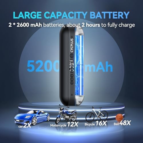 - 【Efficient】This portable air compressor for car tires is a great solution for emergencies on the way. A powerful motor that can quickly inflate a 195/65 R15 car tire from 22 PSI to 36 PSI within 3 minutes. Besides, it only takes 90s to inflate a 700*25C road bike tire from 0 to 120 PSI