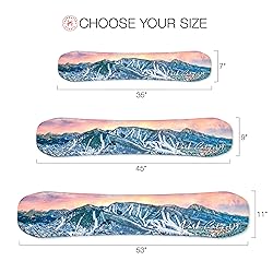 DISTINCTIVE PRINT & DESIGN: Our wooden snowboard sign showcases a captivating mountain image printed directly onto the wood, allowing the natural woodgrain pattern to subtly enhance the image with its beautiful texture. Note that the tips of the sign do not curve up like a real snowboard. DECORATIVE GIFT: Enhance any living room, bedroom, game room or ski condo with our captivating snowboard wall decor, which features a decorative hanging design. This stylish piece makes for a perfect gift, seamlessly blending with teenage or adult interior themes. VERSATILE SIZE OPTIONS: Customize your space with our adaptable wall print sizes in 35" x 7", 45" x 9", and 53" x 11.5". Whether enhancing a small nook or a large wall, select the size that best complements your area with this nicely fitting bedroom decor piece. Whatever size your room is, there's a wall hanging decor, bedroom decoration, and wooden wall art for you. NATURE-FRIENDLY MATERIALS: Opt for sustainability with our wooden mountain wall art crafted from eco-conscious 1/4" thick Maple Plywood. Printed with UV-cured inks and complete with installation essentials like a sawtooth hanger and adhesive foam, our sign not only decorates but also promotes environmental responsibility. PROUDLY MADE IN THE USA: Support local craftsmanship with our home decor wall pieces handcrafted in New Hampshire using eco-friendly wood sourced from North Carolina. Celebrate superior quality and ethical production with our ski mountain arts, enhancing your home with beauty and a commitment to the environment.