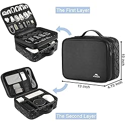 Double Layers & Organized: With two main separate layers, electronics travel organizer keeps dj accessories well organized. Plenty of pockets well made for USB Cable Cord, Cellphone, Flash Drive, Wall Charger, SD/TF Card, Hard Drive, Power Bank, Earbuds, Clipper, Mini Camara. Keep all your gears easily found Large Capacity: This travel dj cable bag has an amazing storage space. Four removable strong shock-absorbing partition protect all items inside from scratches, impact and accidental falling. According to your needs, you can easily carry out various dj accessories. A variety of design layouts bring unlimited possibilities to your storage space Excellent Design: The travel cable bag organizer dj is built with new stylish design concept. Brand-new texture material has a shiny effect under the light. Double Zippers for you to take out the items quickly. Comfortable and sturdy leather handle ensure for long time using. Perfect gifts for your Friend, husband, father Waterproof & Shockproof: The surface of this dj cable bag is made of Advanced & Water-resistant PVC material which has a strong waterproof effect providing great protection for your stuff from getting wet. Padded foam and sturdy PVC honeycomb board offer a shockproof function Portable & Travel Easier: Size: 13×10×4.72 Inches. Compact dj cases can be easily put into your backpack and luggage, convenient for travel, work, vacation. If you tired of the messy storage, this will be your perfect dj accessories helper