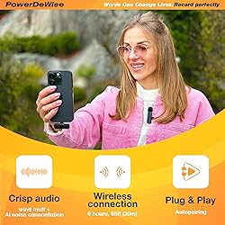 - Introducing the PowerDeWise Wireless Lavalier Microphone, the pinnacle of audio recording technology, specifically designed to enhance your recording experience on a wide range of iPhone models including the iPhone 6, iPhone 7, iPhone 8, iPhone 9, iPhone 10, iPhone 12, iPhone 14 Pro, 14 Pro Max, and 13 Pro Max. This state-of-the-art lavalier microphone for iPhone 6 and mini microphone for iPhone 12 is your ideal companion for professional-grade audio capture, ensuring you never miss a sound detail when creating memorable content. The PowerDeWise microphone is engineered for versatility, making it the perfect mic for iPhone recording. Whether you're a seasoned vlogger needing a reliable vlog microphone or a budding content creator looking for a youtube microphone for iPhone, this device guarantees crystal-clear sound quality. With easy clip-on functionality, this microphone for video recording securely attaches to your attire, enabling hands-free operation and optimal voice clarity. This clip on microphone for iPhone is not just about functionality but also about convenience. The wireless design eliminates the hassle of tangled cords, giving you the freedom to move unencumbered during your recording sessions. As a microphone for iPhone video recording, it is uniquely tailored to elevate your mobile content creation, ensuring every whisper and shout is captured with precision. For Spanish-speaking users, this micrófono para grabar videos offers seamless compatibility with all mentioned iPhone models, making it an indispensable tool for capturing high-quality audio in any language. From recording podcasts to shooting dynamic vlogs, the PowerDeWise lavalier mike for iPhone is your trusted partner. Additionally, this microphone is compatible with a diverse range of applications, including video calls, interviews, and live streaming, making it the best iPhone microphone for video recording. The lightweight design ensures it is easy to carry, while the robust build guarantees durability. Suitable for both professional environments and casual use, this microphone stands out as the top choice for those seeking a reliable recording mic for iPhone. Elevate your audio experience with the PowerDeWise Wireless Lavalier Microphone, the ultimate mobile microphone for iPhone. Secure your purchase today and transform the way you capture sound on the go.