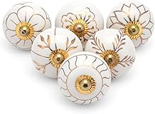 Craft Kart Vintage Hand Painted Ceramic Pull Knobs for Kitchen Cabinet Door and Drawer Wardrobe Cupboard Set of 15 White and Gold