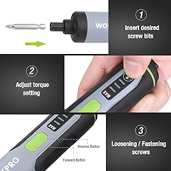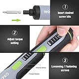 - WORKPRO 4V Electric Screwdriver, Rechargeable Cordless Screwdriver Set with 35 Bits, Extension Rod, USB Charging Cable in Carrying Case, LED Light, Black Gray
