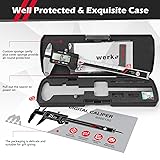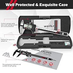 EXQUISITE HIGH-QUALITY PACKAGING: a hard plastic case with a sponge cavity, providing comprehensive protection for your calipers. ACCURATE MEASURING: The Werka digital caliper provides precise measurements for any project, with accuracy at 0.001"/0.02mm. It ensures that your measurements are always spot on. 3 DISPLAY MODES: The caliper features inch, fractional inch, and millimeter display modes for added convenience. It makes it easy to switch between different units of measurement. 4 MEASURING WAYS: The external, internal, depth, and step measurement capabilities make this caliper versatile and useful for a range of applications. LARGE LCD DISPLAY SCREEN: The easy-to-read display screen allows for clear visibility, even in low-light environments. You can quickly and easily read the measurements without squinting. FINE POLISHED STAINLESS STEEL FRAME: Made with high-quality materials, the caliper has a precise thumb roller for smooth movement. It is durable and built to last, with a sturdy construction that can withstand heavy use. LOW BATTERY WARNING FEATURE: The screen flashes to prompt for a battery change, ensuring that you never run out of power during a job. THE BEST GIFT FOR MEN: well-designed packaging is suitable for boyfriends, husbands, fathers, grandfathers, brothers and other relatives and friends who need calipers as Christmas gifts.