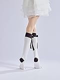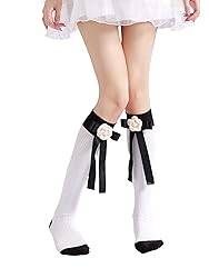 - Sahabowi Camellia Bows Handcraft Calf Socks For Women, Cotton High Knee Stockings, Elastic Stretch Thin(HS2023042411 White, 1pair)