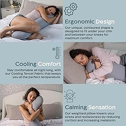 SLEEP BETTER - Whether you struggle with falling asleep, physical discomfort, or other limitations, the SleepCloud is here to save the day. Our Weighted Body Pillow will help calm your racing mind and help you fall asleep faster. It can also be placed behind your back to encourage side sleeping and reduce snoring. HUG YOUR STRESS AWAY - Holding or hugging our Weighted Body Pillow provides a comforting experience, making you feel relaxed. The 6.5LB Weight adds a soothing touch, allowing your body to unwind, boosting your overall mood and improves sleep quality. COOLING COMFORT - Enjoy a refreshing nights rest with our premium cooling pillow cover made from Tencel Fabric which is cool to the touch and wicks away heat during the hot summer months. Designed to regulate temperate for uninterrupted sleep. UNIQUE DESIGN - Our unique, contoured shape is designed to fit under your chin and between your knees for maximum comfort. Weighted with glass beads (6.5LBS) for the perfect amount of weight and removable/washable pillow cover. SATISFACTION GUARANTEED - At SleepCloud we proudly stand behind all of our products. Which is why we offer a 12 month warranty.