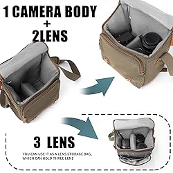 ✅【Capacity】Size: 22.5*14.5*27CM/8.9*5.7*10.6inches, Fits 1 camera +2 lens + mobile phone + filter + accessories. ✅【Multi-Functions】①When taking out the inner partition, the camera bag can be used as an daily leisure messenger bag;②double metal alloy zippers for you quick access your camera;③10MM ultra-thick body, firmly protect your camera and lens accessories;④The detachable and customized DIY inner bag made of 20mm thickness of 7 layer protection padding, shockproof and no deformed. ✅【Main Feature】⑤The comfortable, shockproof and reduce pressure shoulder strap with non-slip pad, can be adjusted by your size;⑥Two pockets on sides for your battery,lens cap,sunglass ect storage;⑦Comfortable and breathable handle release your hand stress ✅【Perfect Design and Good Quality】①Shoulder belts and handle that connected with camera bag have taken bar-tack reinforcement technology. Best care for your cameras, lens, flashes, tripod and other accessories.②Cwatcun alloy zipper and hooks won't rusty within 3 years ,and wont break within 5 years. ✅【Satisfation Service】If you encounter any issues with your bag within one year of purchase, we will provide you with a new product. We are committed to providing high-quality products and excellent customer service.
