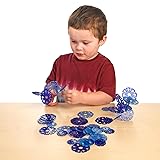 CALMING COLORS: This set of 180-pieces is featured in 2 translucent tones of blue and light blue. The large linking disc measures 2-1/2 inches diameter and the small linking disc measures 1-1/2 in dia EARLY STEM: Use the calming ice flakes to introduce sorting, patterning, counting, and problem solving. EXPLORE CREATIVITY: Children love to slide and link the calming ice flakes together to create imaginative designs - and then pull them apart to start all over again! LOADS OF TACTILE FUN: The ice flake discs are easy for little hands to grasp and fit together! Kids can practice developing their fine-motor skills and hand-eye coordination while having fun playing. GREAT FOR LIGHT TABLE DISPLAY: Kids will enjoy exploring calming colors and light with the translucent ice flakes. The pieces can also be used with natural light.