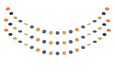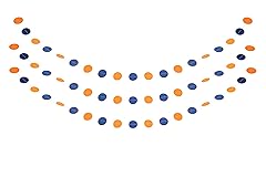 Navy blue and orange circle dot paper garland, made of high quality craft paper Package contains 3 pcs of 10 feet paper garlands, you can cut them into different lengths Garland is approx 10 feet in length with about 32 dots, each dot 2" in diameter Be careful unrolling the garland to prevent tangling Perfect for Graduation Baby Shower Halloween Thanks Giving Galaxy Outer Space Party Backdrop Dessert Table Decoration Supplies