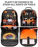 FUZVOL Heavy Duty Tool Backpack, Hard Shell Tool Bag, Hvac Tool Bags, Electrician Construction Backpack for Men, Molded Base, Removable Tool Organizer and Laptop Compartment, Orange