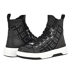 - An updated high-top sneaker style, these shoes are constructed in a knit material with allover logo pattern, and feature a lace-up vamp and rubber sole.
