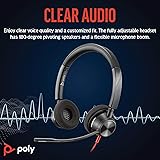 STAY CONNECTED: Connect to your PC/Mac with USB-C or via USB-A with the included USB-C to USB-A adapter. ENHANCED AUDIO: Poly signature audio quality and reliability. HEADSET FLEXIBILITY: With professional voice quality and a customized fit, this fully adjustable headset has 180-degree pivoting speakers and a flexible microphone boom. SECURE FIT: Supports long-wearing comfort with a plush, padded headband and pillow soft ear cushions. Hi-fi stereo wearing style for an immersive experience. COLLABORATION READY: Experience seamless collaboration with top platforms including Zoom, Microsoft Teams, and more.