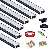 - Elevate your lighting game with our U shape surface mounted LED strip black channels with diffuser . Designed with meticulous attention to detail, these channels offer superior quality and functionality for all your lighting needs. With our LED strip black channels, you can transform any space into a haven of elegance and style. The U shape design provides a sleek and modern aesthetic, while the black finish adds a touch of sophistication. Whether you're highlighting architectural features, creating stunning under cabinet lighting, or showcasing your prized possessions in display cases, these channels are the perfect solution. The diffuser ensures that the light emitted by the LED strips is evenly distributed, eliminating harsh glares and creating a soft and welcoming ambiance. Say goodbye to uneven lighting and hello to a beautifully illuminated space. Installation is a breeze with our surface-mounted design. Simply mount the channels to any surface using the provided screws or double sided Tape, and easily insert your LED strips for a secure fit. No more complicated setups or frustrating installations. Our channels are designed to save you time and effort while delivering outstanding results. These U shape black channels have endless applications, making them suitable for both residential and commercial use. Use them in your home to add a touch of luxury to your living spaces, or utilize them in your office, restaurant, or retail store to create a captivating atmosphere that will leave a lasting impression on your customers. Package Include 1.16 Inch/40.6CM U Shape Aluminum Channel -6 pieces 2.16 Inch /40.6CM Milky Cover -6 Pieces 3.M3X12 Stainless Steel Countersunk Screw -12 Pieces 4.M3X20 Carbon Steel Screw With Wall Anchor-12 Pieces 5.End Cap With Hole -6Pieces 6.End Cap Without Hole-6 Pieces 7.Stainless steel Mounting Clips-12 Pieces 8.PMMA Double Sided Tape X8.2FT