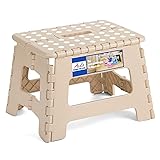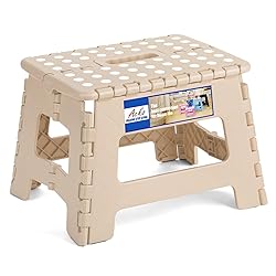 ACKO Folding Step Stool 9 Inch 300 lb Capacity, Plastic Foldable Step Stools for Kids and Adults, Folding Stools Suitable for Kitchen, Stepping Stool with Handle Khaki 1PC