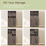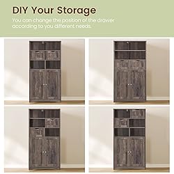 ⭐[Ideal Space Savers]Considering your different storage needs, Iwell storage cabinet is designed with a combination of open space and hidden space. You can place photos, crafts on the upper open shelves to decorate your room, adding texture and glamour to your room. 2 large drawers can be used to store games and films to help you categorize your items. The lower compartment can be used to store entertaining items and blankets, with adjustable shelves to improve space utilization, customizable space for items of different heights. ⭐[Versatile storage cabinet] With ample display space and lots of storage. Not only can you put it in your living room as a kid storage cabinet to store toys and legos, but also as a kitchen storage cabinet for dishes, cereals, pots and pans; an entryway cabinet for shoes, gloves, and pet supplies; a bathroom cabinet for towels and toiletries; a bookcase in your home office for files and books!-Meets your multiple storage needs! ⭐[Sturdy & Durable Construction]Made from premium P2 grade panels and silver metal handles, this storage cabinet has superior stability and durability to stand the test of time. The textured silver handles enhance the overall design and are durable and hard-wearing. It also comes with a mechanism for anchoring it to the wall to prevent tip overs, maximizing safety and stability, giving your family a safe living space! 🔧【Assembly You’ll Love】 No need to be bothered about bolts and nuts when assembling this bathroom cabinet, as it comes with numbered parts and easy-to-follow instructions to make it easy-peasy. ❤【100% Satisfaction Service】Still worried? We provide every customer with an 18-months quality service, if you have any issues, please let us know, we will give solution within 24 hours or give you 100% refund. Overall size: 11.8"D*23.6"W*49.6"H.