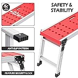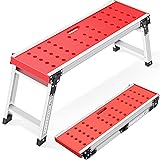 Sturdy & Stable Work Platform: This sturdy work platform is made of high-quality plastic and aluminum, the 12.2" wide foot platform provides ample standing space for your feet, 4 anti-slip feet cover prevent slipping, and the security locking ensures stability of the step ladder while working, perfect structure and excellent quality 330 LBS Heavy-Duty Design: This adjustable platform with a maximum load capacity of 330 lbs, perfect for heavy-duty tasks, whether you're working in the workshop, garden, or garage, it allows you to work with heavy tools with ease, from washing vehicles to cleaning windows, this folding step ladder is an essential tool for any general maintenance work Lightweight & Foldable: This work platform ladder features a secure and sturdy construction, the foldable design and lightweight construction make it easy to move and store, while ensuring it is durable enough for everyday use, provides a reliable and safe platform for your projects Dimensions: Unfold size: 42.72" * 12.2" * 16.54"(L*W*H), folded size: 35.83" * 4.13" * 12.8"(L*W*H), with a unique surface design that prevents slipping and a large load capacity, its lightweight and foldable features make it perfect for saving space and carrying around Multifunctional Ladder: This platform is suitable for various working environments such as car repair shops, workshops, warehouses, garage, the design of the pedal holes is particularly suitable for washing or repairing cars, it can prevent water accumulation, also can hold wrenches, hammers, and other repair tools, It is truly a perfect work platform ladder!